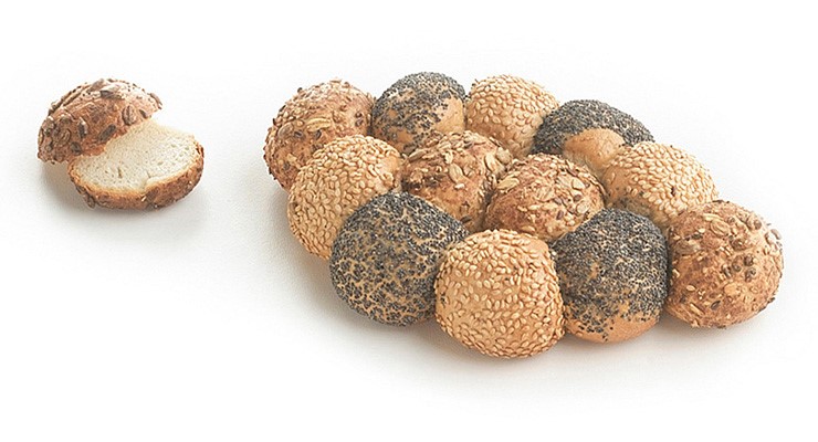 Brytbröd bestående av 12 mindre bröd (±21gr) i en oval form toppad med havre och vete samt rågflingor, solroskärnor, linfrö, sesamfrö samt vallmofrö.