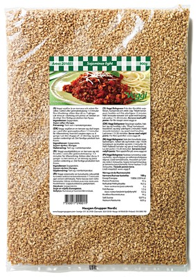 Sojaprotein som är torrvara. Förvälls innan användning. Helt veganskt, Non GMO, laktos och glutenfri.