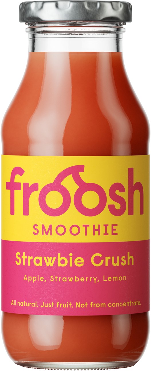 Marknadsbudskap Marknadsbudskap: Njut av en härlig smoothie från Froosh som är gjord på 100 % frukt och som dessutom är helt utan tillsatt socker. Denna består av äpple, jordgubb och citron och är utan koncentrat. Den är perfekt för alla tillfällen, till exempel till frukost, efter träning eller när du bara behöver ett snabbt mellanmål för dig eller dina barn.