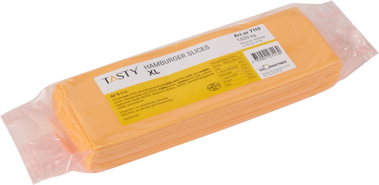 | Sökbegrepp E-handel | Tasty ost hamburgerost XL kyld Cheddarost 86x86 17g/skiva 7108 |