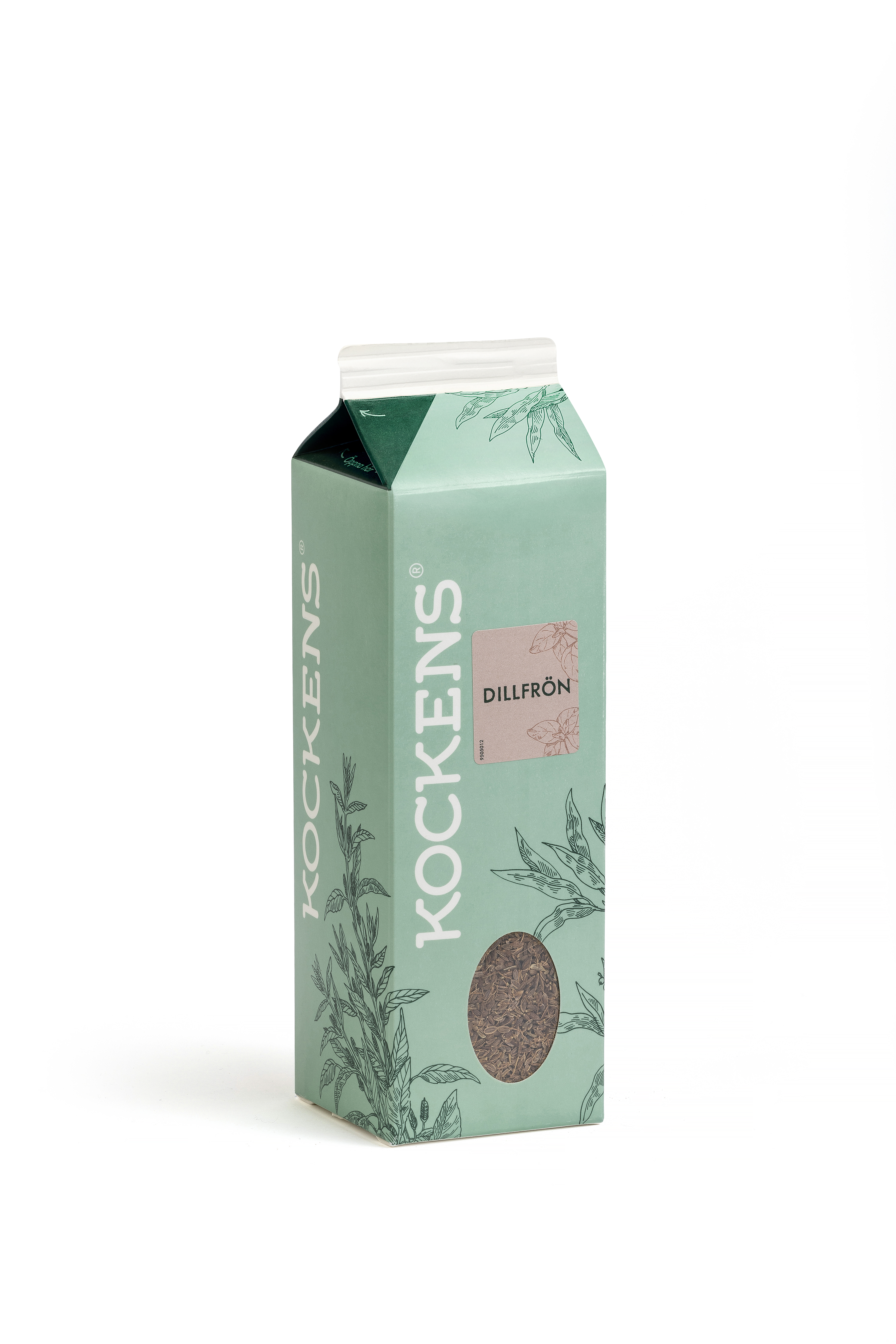 Dill är en ettårig växt som blir ca 70 cm – 1 m hög. Blommorna, dillkronorna, är stora, gula och flockblommiga. Med sin mycket karaktäristiska smak har dill sin givna plats i den svenska sommarmaten och vi i Skandinavien lär vara de som använder dill allra flitigast i världen. Både dillbladen och dillfröna används som krydda. Smaken förstärks under tillagningen. Dillbladen skördas fram till blomningen, sedan blir de sämre. De kan frysas in, användas färska eller torkas. Bladen är mindre beska och mildare i smaken än fröna. Fröna skördas när blomhuvudena börjar bli bruna. Dillfrön ger sötma och lite bittert bett i inläggningar med sill, strömming och gurka. Kryddan är packad i FSCmärkt kartong med skruvkork där plastråvaran kommer från tallolja. Kryddan är packad i Fjälkinge i Skåne.