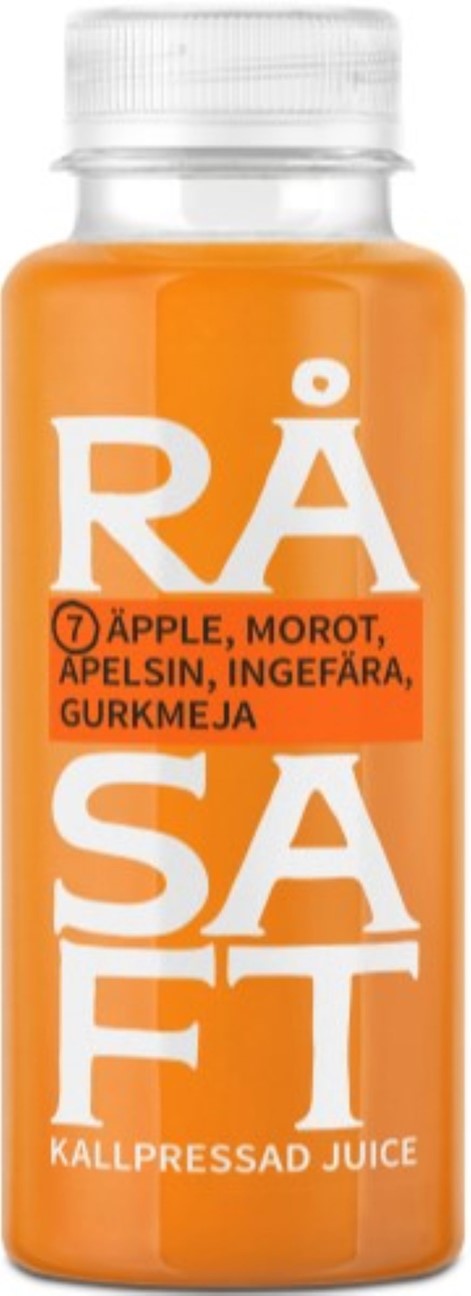RÅSAFT är en kallpressad juice som inte är pastöriserad. RÅSAFT pressas i Sverige av färska frukter och grönsaker. Den är rik på fibrer och vitaminer. Förvara den kallt och skaka ordentligt för bästa njutning.