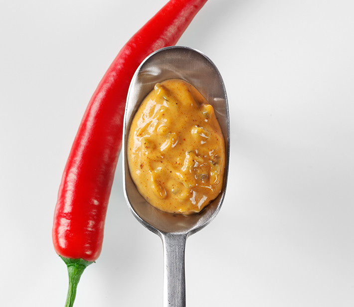 En spännande variant av en traditionell hamburgerdressing m hetta från Harissa. Till hamburgare, bakad potatis eller som en het dressing till Fish’n Chips. Ägg från frigående höns. Tillverkad i Sverige.