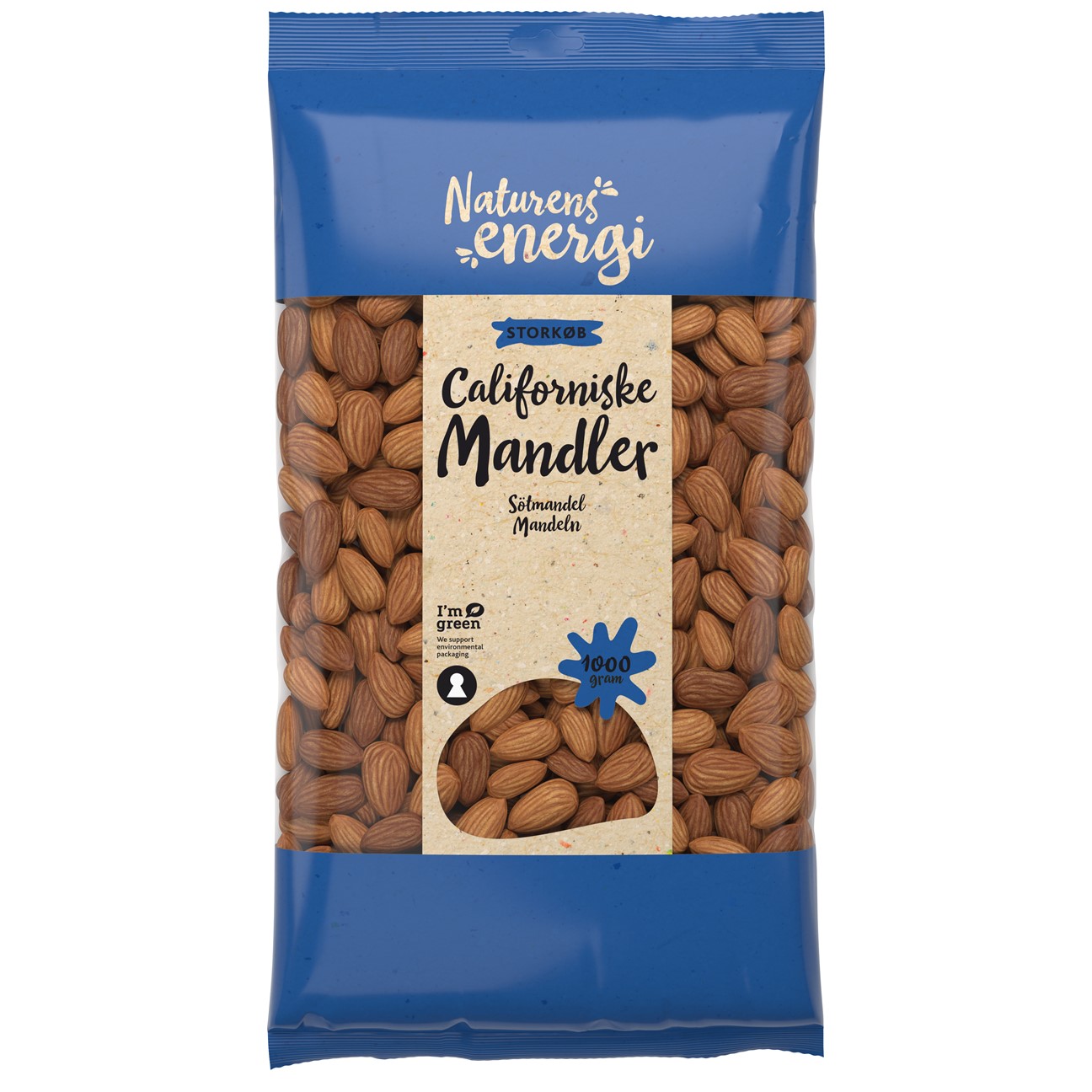 | Marknadsbudskap: | Sötmandel är gott i bakverk, müsli och desserter. Rostad sötmandel är gott som snacks. Innehåller nyttiga fettsyror. |