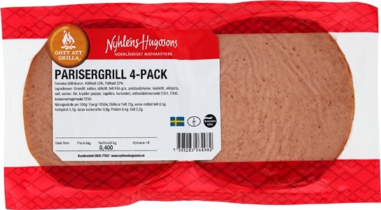 Beskrivning Artikelkategori: PARISERGRILL 4-PACK Produktnamn: PARISERGRILL 4-P Varumärke: Nyhléns Hugosons Förpackningsstorlek: 400G