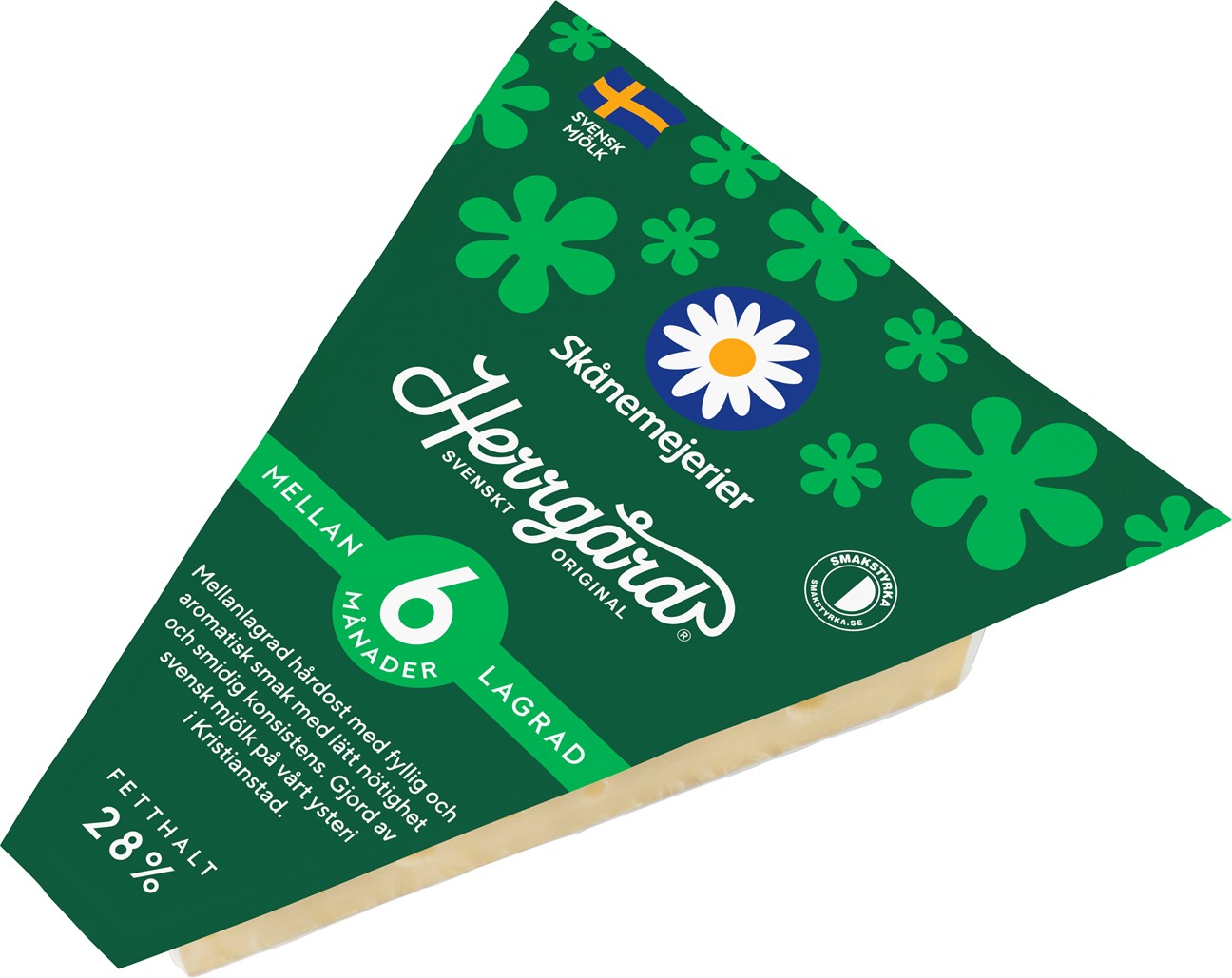 Skånemejerier Herrgård® 28 % 670g mellanlagrad har en fyllig och aromatisk smak med lätt nötighet och smidig
