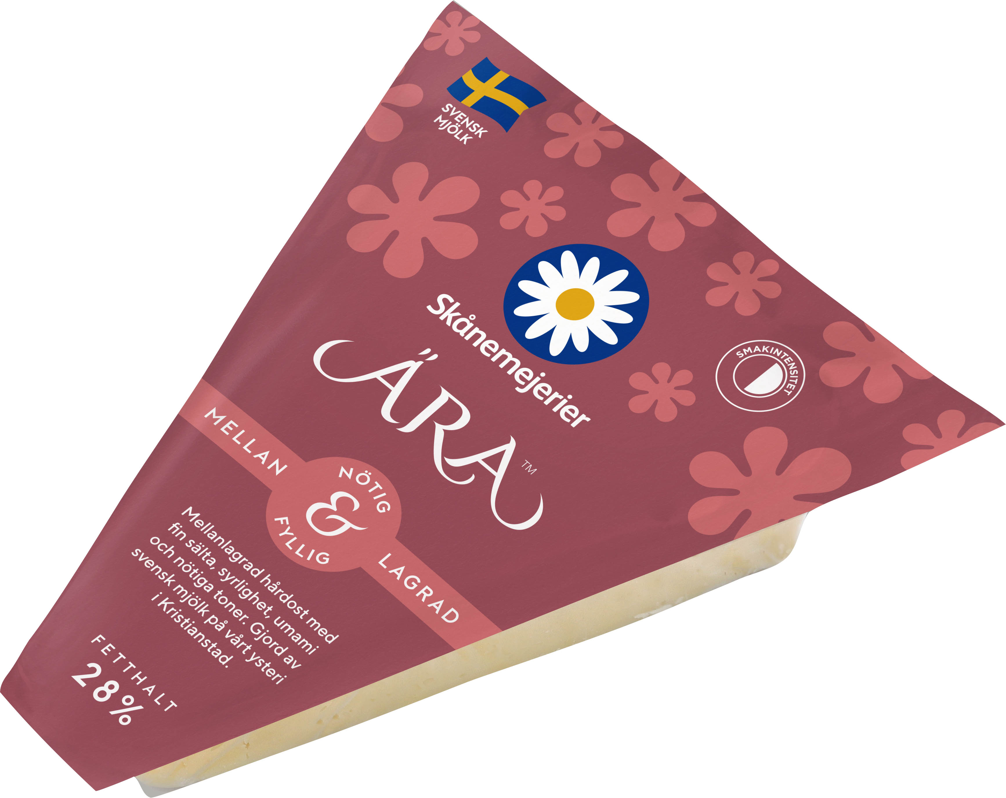 | Marknadsbudskap: | Skånemejerier Ära® 28 % är en mellanlagrad hårdost med ren och balanserad syrlighet och sälta. Tillverkad av svensk mjölk från gårdar i södra Sverige med de högsta kraven på djuromsorg. |