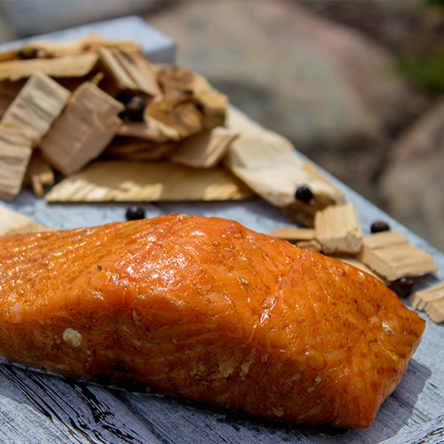 Varmrökt lax av högsta kvalité. Rökt för hand i Falkenberg med enbär, färskflisad alved från Halland och helt utan tillsatser. De naturliga aromerna från veden ger en välbalanserad röksmak och fin karaktär. Färdig att ätas i en sallad eller brytas i din favoritpasta. Hållbart odlad (ASC) och nyckelhålsmärkt.
