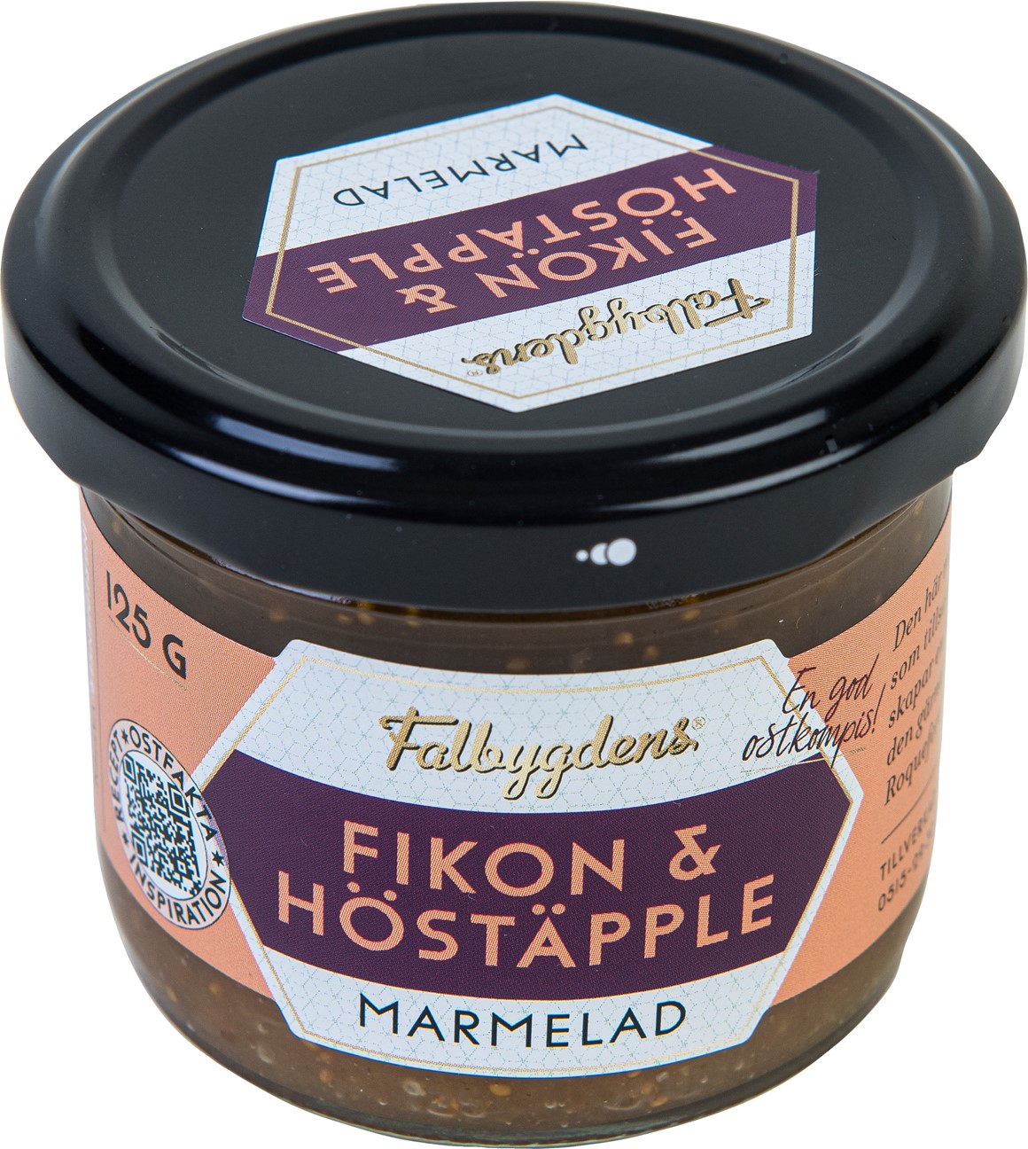 En utsökt marmelad med rund och mjuk smak. I Falbygdens® Delikatessmarmelad Fikon/Äpple dominerar söta toner, men äpplets lite syrliga smak balanserar upp och ger marmeladen en fräsch smakupplevelse. Allra bäst görs sig marmeladen tillsammans med Falbygdens ost, och då gärna en smakrik blåmögelost eller en lagrad hårdost. Varför inte servera den som en marmelad till ostbricka med några krispiga kex?