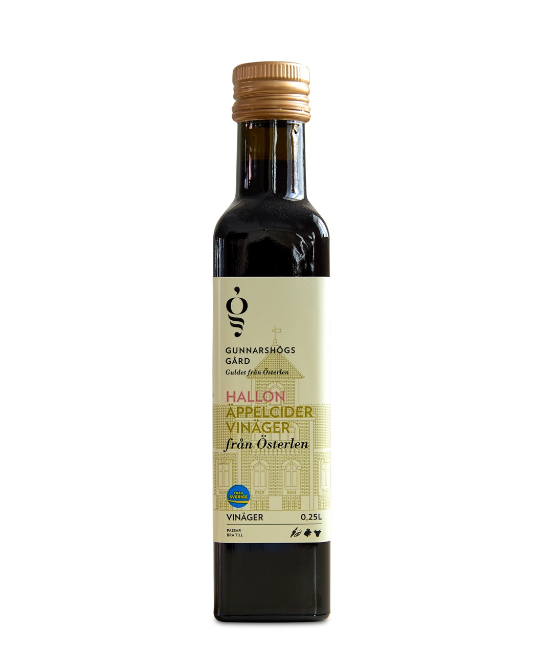 Mitt på det vackra Österlen ligger familjegården Gunnarshögs Gård. Här tillverkar vi vår egen Äppelcidervinäger, gjord på svenska äpplen. Äppelcidervinägern i den här flaskan har vi smaksatt med hallon som ger en spännande smak i dressingen. Kom gärna förbi oss på gården så berättar vi mer.