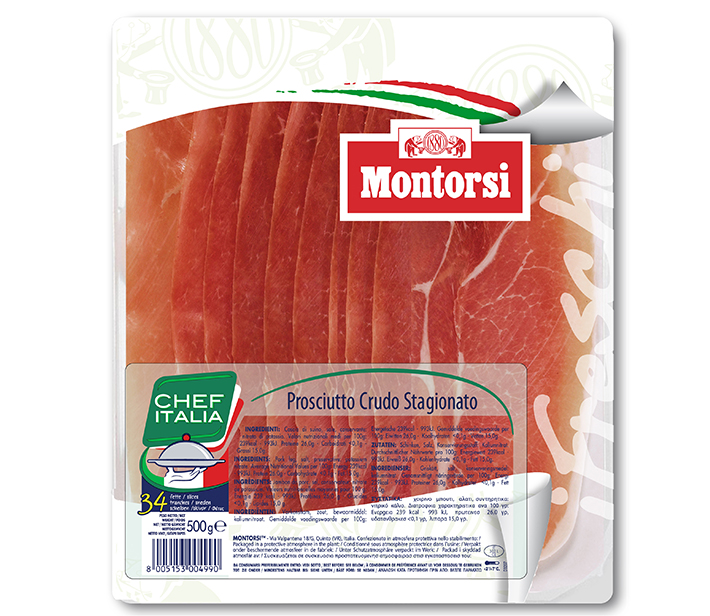 Prosciutto Crudo är en av italiens mest välkända delikatesser. Den får mogna i minst 10 månader, allt enligt gamla italienska traditioner. Resultatet blir en smakrik skinka med härlig sälta.
