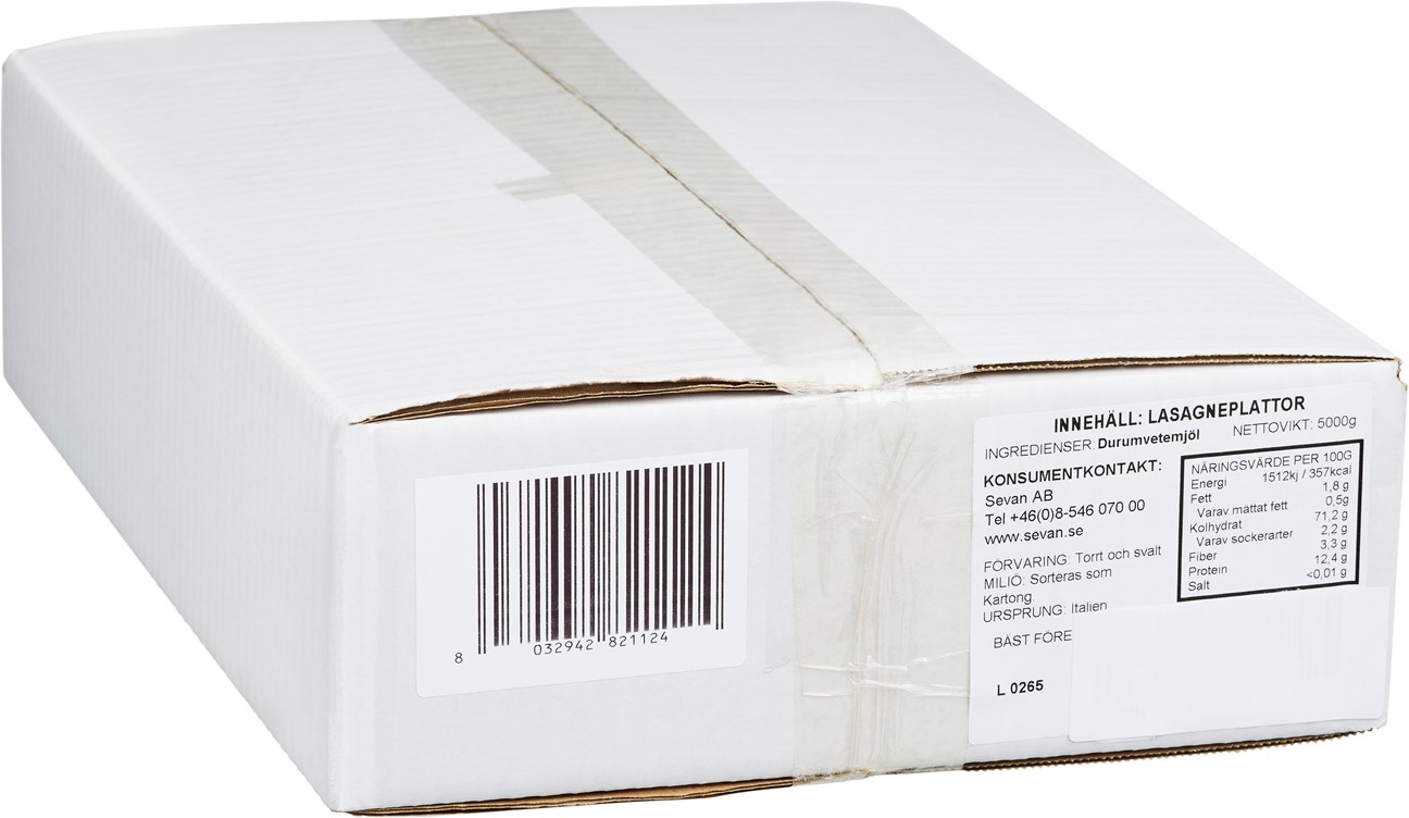 Tunna, breda pastaplattor av 100 % durumvete som ger en härligt fyllig och mjuk konsistens. Perfekta för lager på lager i klassiska lasagner och gratänger. Enkel att arbeta med och håller formen väl vid tillagning. Lasagneplattornas storlek: 17x8 cm