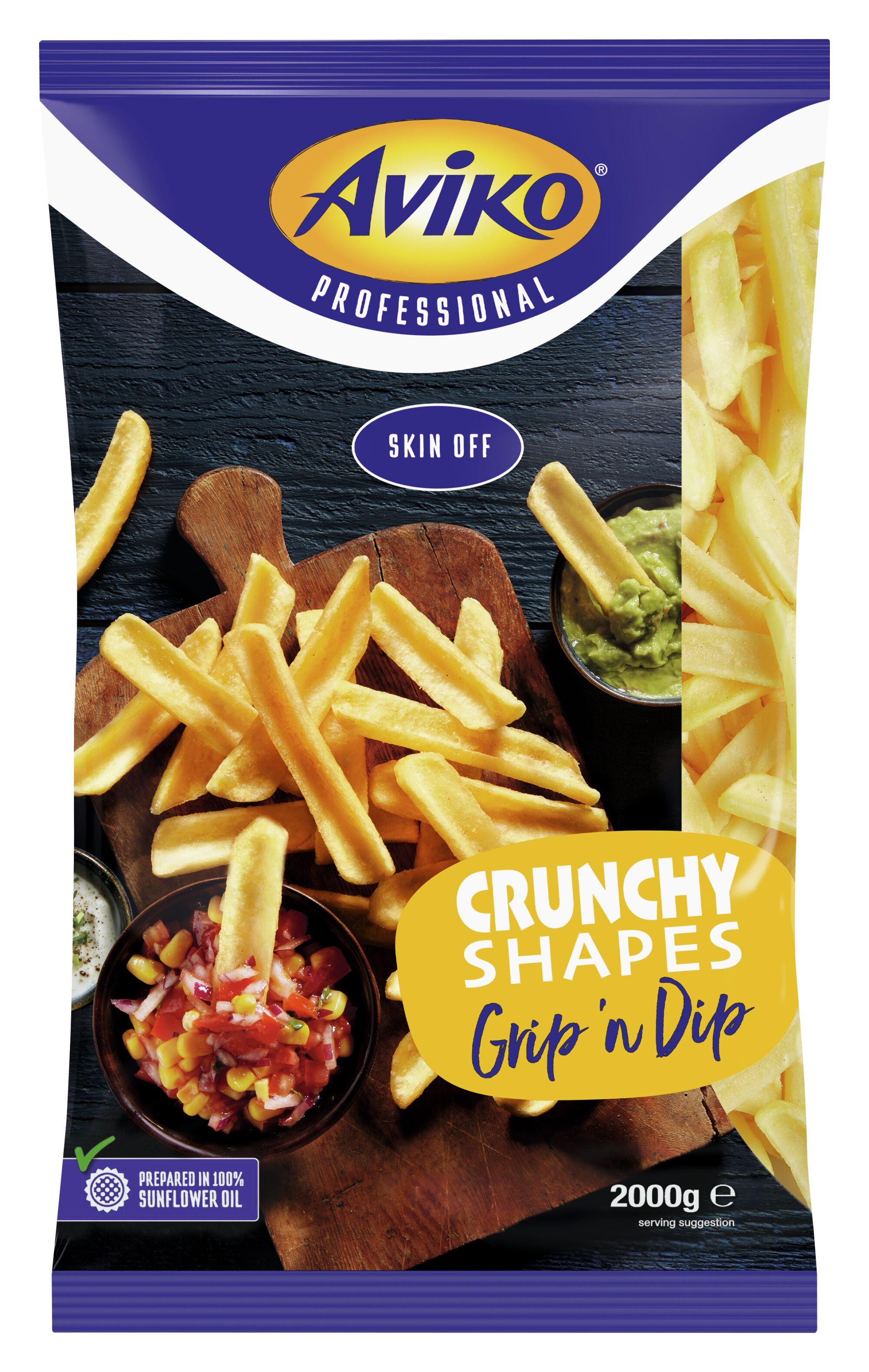 Beskrivning Artikelkategori: Super Crunch Artikelbeskrivning: Super Crunch Pommes Frites Grip´n Dip Produktnamn: Super Crunch Grip´n Dip Varumärke: Aviko Förpackningsstorlek: 2 kg