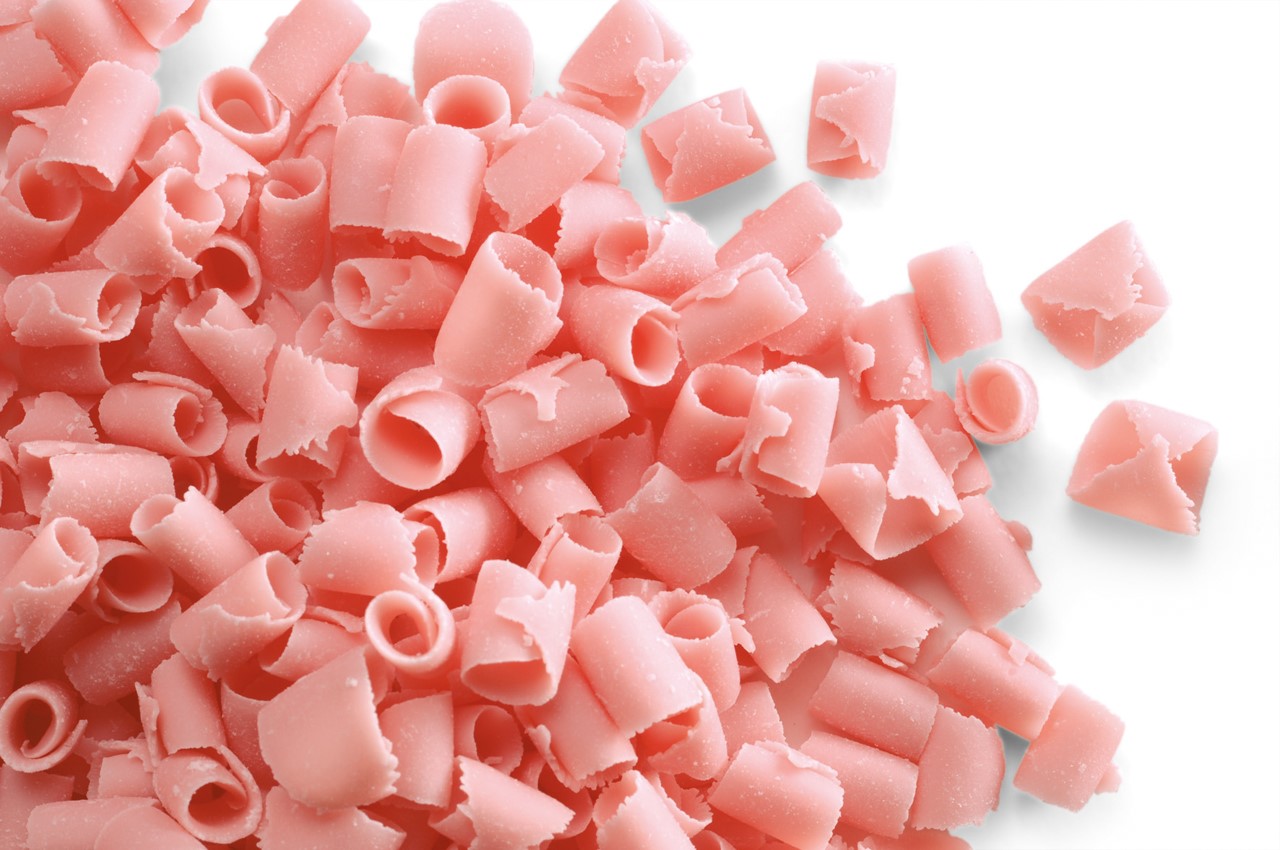 Chokladspån med jordgubbssmak. Garnetyr till desserter, glass och tårtor.