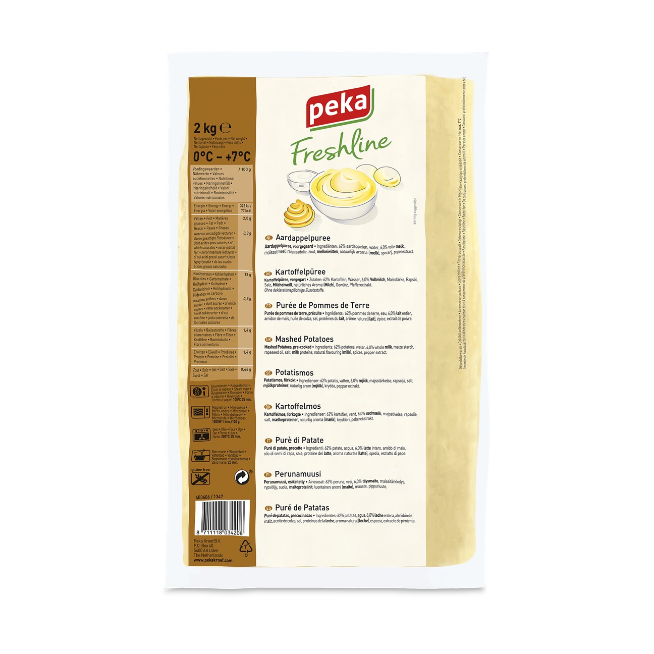 | Ingrediensförteckning: | Ingredienser: 62% potatis, vatten, 6% MJÖLK, majsstärkelse, rapsolja, salt, MJÖLKPROTIENER, naturlig arom (MJÖLK), krydda, peppar extrakt. |
