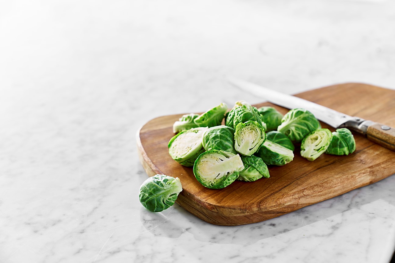 Brysselkål i halvor som passar utmärkt att ugnsrosta, steka eller koka.