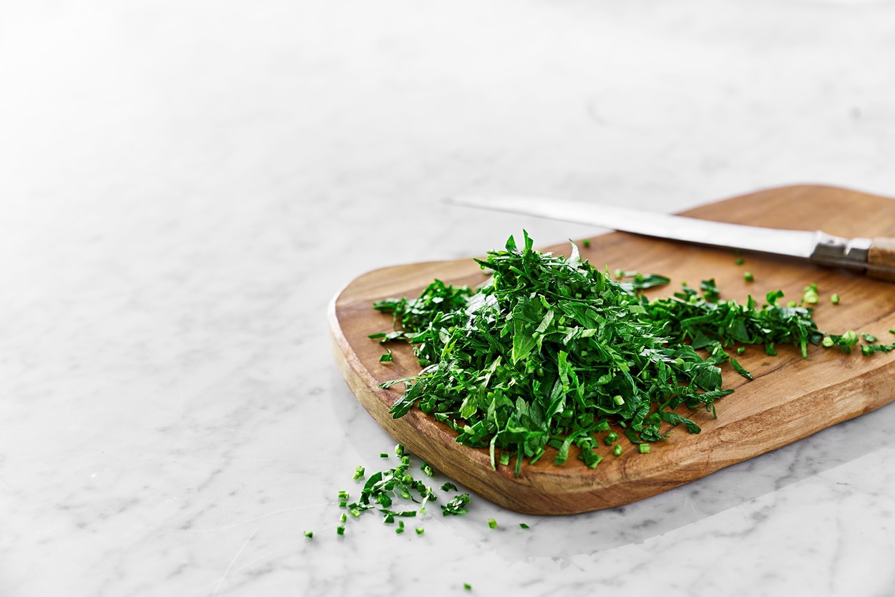 Finhackad kruspersilja till kalla röror, sallader eller som dekoration.